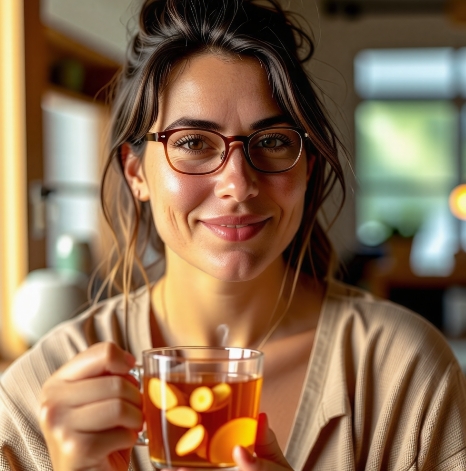 생강차 마시는 비염 걸린 여성