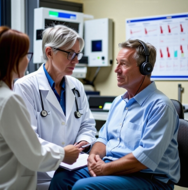 ""만약 전날 밤에 자기 전과 아침에 깼을 때 청력이 다르게 느껴진다거나 전화를 받을 때 귀에 물찬 느낌이 나면 돌발성 난청일 확률이 매우 높지요. 이럴 때는 서둘러 청각 검사 장비가 있는 이비인후과에 가서 검사를 받고 맞춤형 처치를 빨리 받는 게 좋아요."